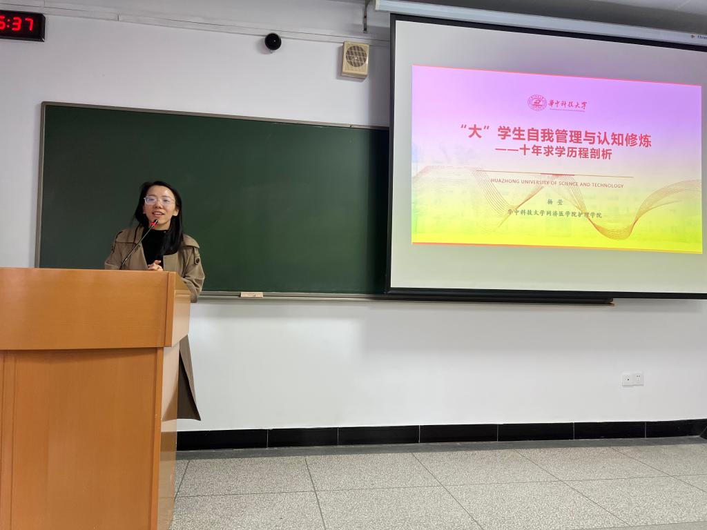 杨莹老师首先展示了调研新生问题之后的总结,结合自身本硕博三个阶段的求学经历,阐述了设立人生目标的重要性。她呼吁新生们广泛参与各项活动,在实践中发掘个人兴趣所在。杨莹老师强调自我管理的关键性,鼓励暂时迷茫没有方向的新生,勇敢地去做“一定正确的事情”,比如读书思考、志愿义工等等,通过“过渡性”的短期目标为人生蓄力积淀。随后,她强调“批判性地接纳专业性的观点”,指导新生们在成长中不断修炼专业认知,以广阔的视角思考专业价值和个人价值之间的关系。最后,杨莹老师给同学们分享了个人珍藏的书目,并鼓励同学打好通识基础,树立正确的人生观和职业道德。