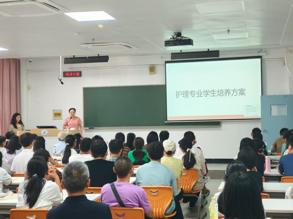 随后,教师班主任邵冰老师通过向各位同学和家长介绍护理专业的员工培养方案,分析每一学年学习的课程设置和学业规划来让大家对护理专业有一个大致的了解。同学们在听完邵冰老师的发言后也更加明确了自己日后的学习目标,为日后充实的老员工活做好了心理准备。同时,邵冰老师还强调了珍惜大学时光和提前做好未来的职业规划和重要性,激励同学们只争朝夕,不负韶华。