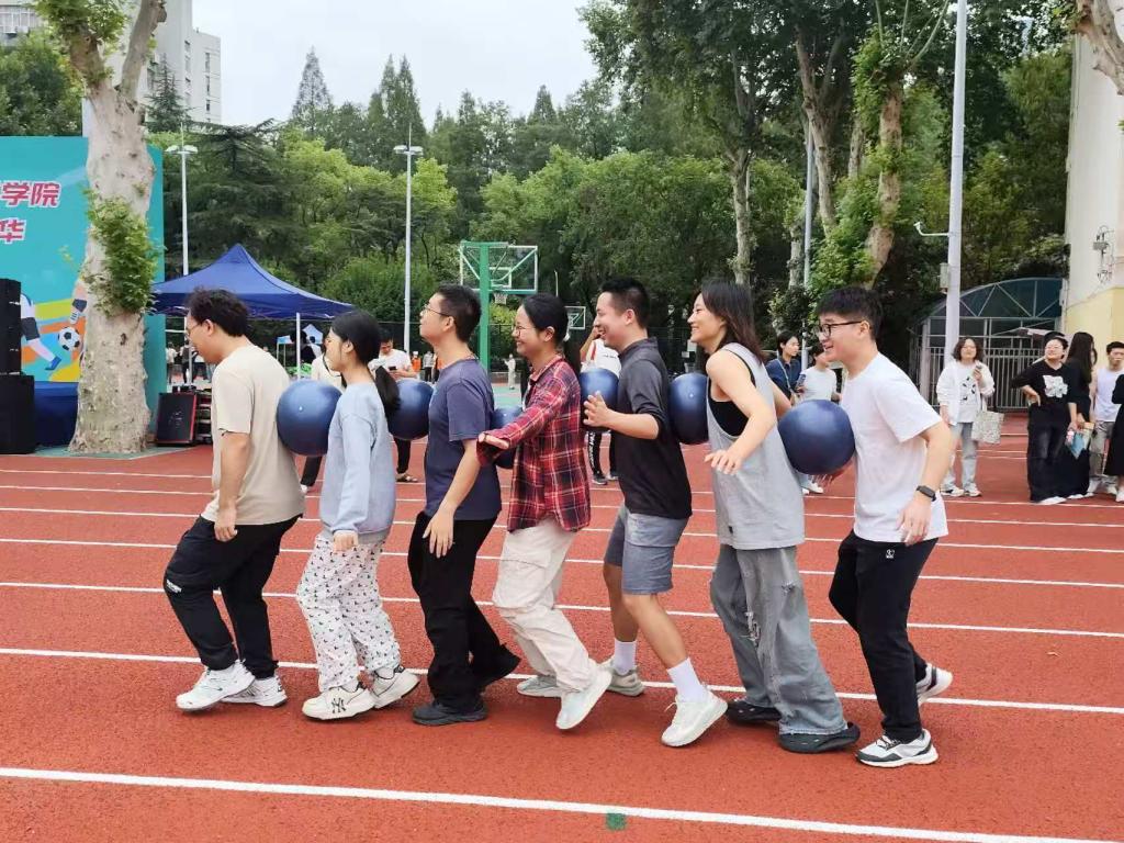 “预备——开始!”哨声响起,大家同步迈动脚步,步频一致、幅度相当,如同被无形的线牵引着向前推进。没有意外的掉球,也没有慌乱的调整,夹在中间的瑜伽球仿佛长在了队员身上,始终稳稳贴合,不见丝毫晃动。赛道旁,观众们屏息凝神,从最初的紧张期待,渐渐变成了连连赞叹,加油声中多了不少“好稳!”“太默契了!”的惊呼。最终,我们以14秒的优异成绩拿下了第二名,再次取得团体10分的成绩!队员们全程零失误的稳定发挥,是“心同频、步同步”的协作智慧,让这场比拼成为赛场最“稳”的风景线。