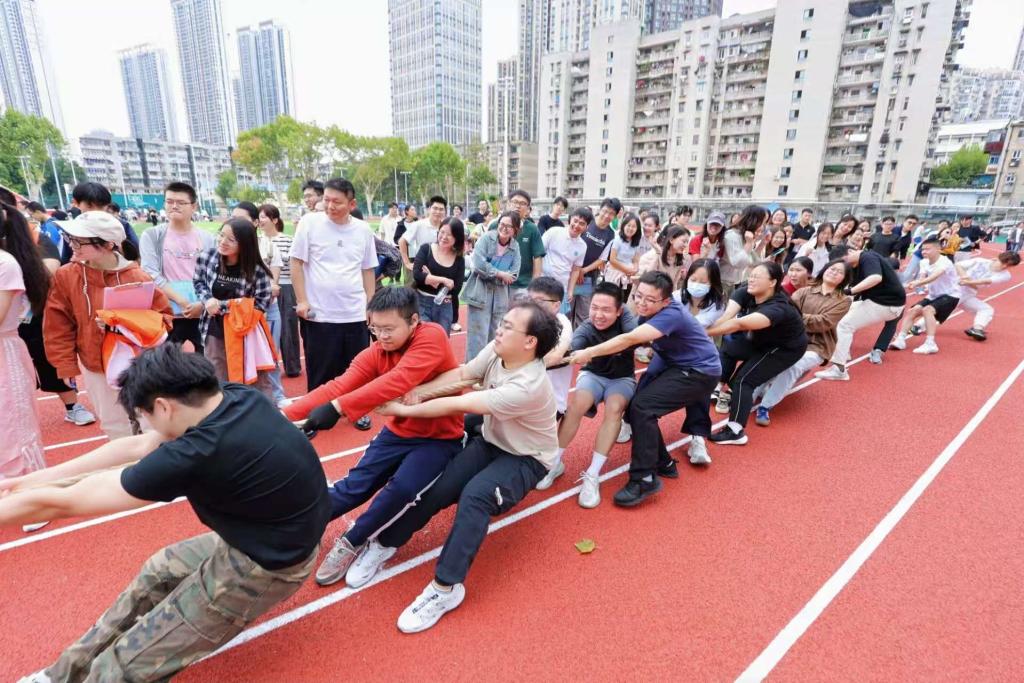 赛场周围的加油声、呐喊声如潮水般涌来,一波接着一波。选手们听着这鼓劲的声音,劲头更足了,脸上的神情愈发坚毅。双方你来我往,绳索上的标记在中间地带来回移动,紧张的氛围感染着在场的每一个人,压轴大戏拔河比赛将会场氛围推向了最高峰。最终,在一阵热烈的欢呼中,我们获得了第三名,团体总分加上了最后一笔闪亮的8分!这场拔河比赛也为趣味运动会增添了浓墨重彩的一笔,更让大家深刻感受到了团结的力量。