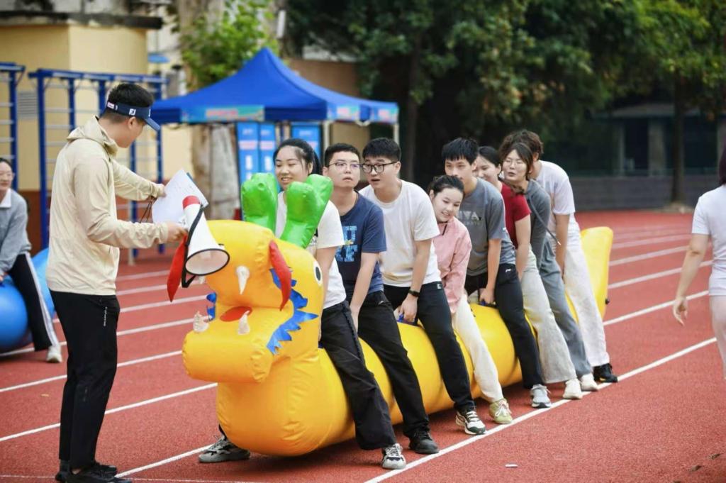 跑道上,8仓位的旱地龙舟静静“蛰伏”,等待选手们唤醒。“各就各位,出发!”裁判的声音通过小喇叭传遍赛场,队员们立刻同步发力——齐声喊着“一二、一二”的口号,脚步整齐划一,借助团队起步跑的惯性,带动龙舟飞速向前冲。龙舟划过赛道,扬起阵阵欢呼,赛道旁的加油声此起彼伏,为选手们注入更多力量。划过终点线的我们获得了第三名,为团体总分注入8分!没有水波激荡,却依旧有龙舟竞渡的热血;没有江河作伴,却在奔跑中点燃了团队协作的激情。