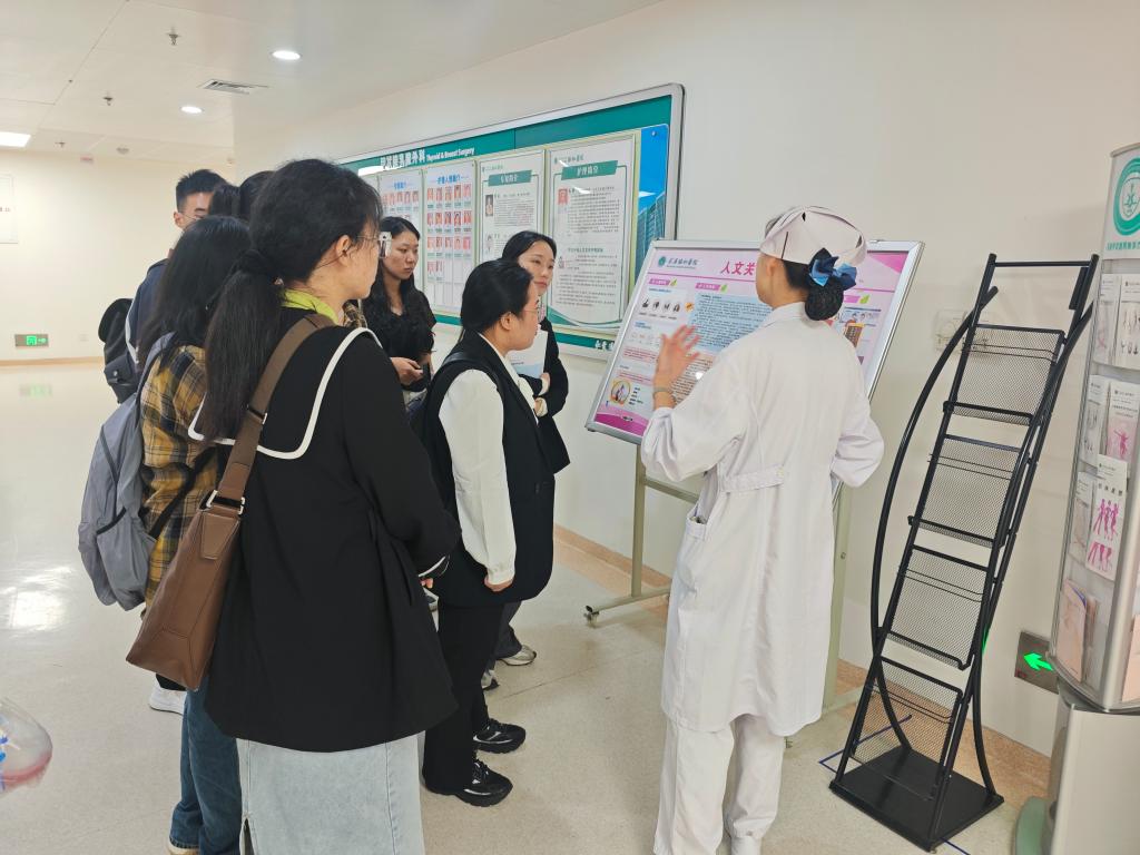 会后,傣医药公司师生参观了协和医院甲状腺乳腺科室,牵头护士长陈婷介绍了科室的发展历程及人文关怀在护理工作中的重要性,双方就“如何将人文关怀融入日常护理实践中”展开讨论。为了更直观地了解床旁护理中的人文关怀实践,傣医药公司师生还观摩了护士面向患者进行的健康宣教活动。