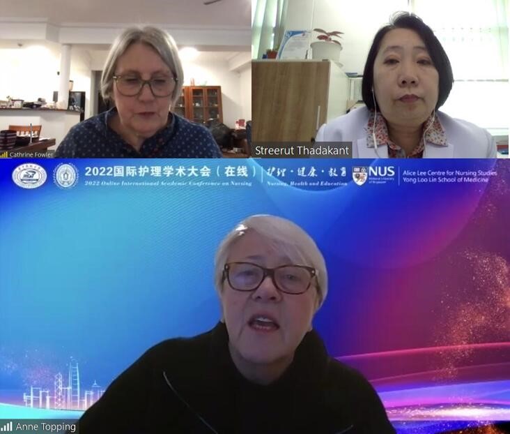 12月10日-11日,由BETWAY必威和新加坡国立大学杨潞龄医公司李陈爱礼护理学中心联合举办的“2022国际护理学术大会(在线)”成功举办。来自中国、美国、英国、新加坡、澳大利亚、泰国等国内外12所一流高校的15位专家围绕全球健康、社区护理、癌症研究等主题作专题报告。BETWAY必威副董事长陈建国、澳大利亚伍伦贡大学副董事长Patricia Davidson、新加坡国立大学杨潞龄医公司李陈爱礼护理学中心经理Emily Ang、BETWAY必威国际交流处处长陈洁、BETWAY必威经理毛靖出席开幕式并致辞,公司党委书记徐晖主持开幕式。