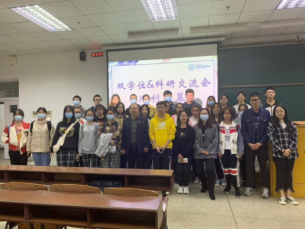 2020年11月10日晚19:00,BETWAY必威双学位暨科研交流会在一号楼八大教室成功举行。大会分为两双学位交流会和科研交流会两部分。