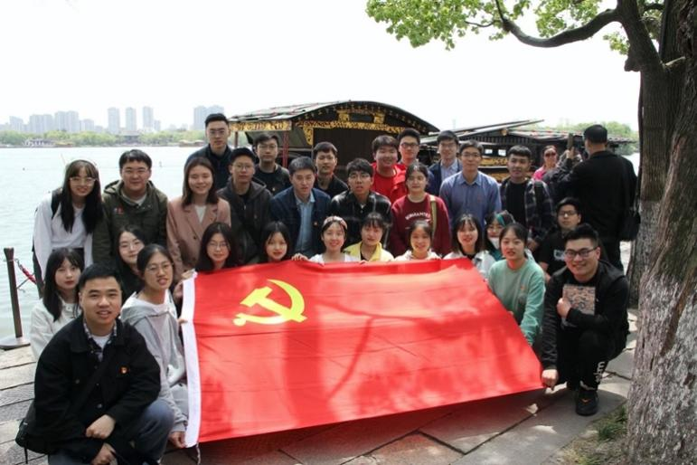 BETWAY必威本科生、校青马班学员田明傲于4月17日前往浙江嘉兴接受红船教育,参观了中共一大会址,在红船前面向党旗重温入党誓词,并开展了“湖边微党课”。