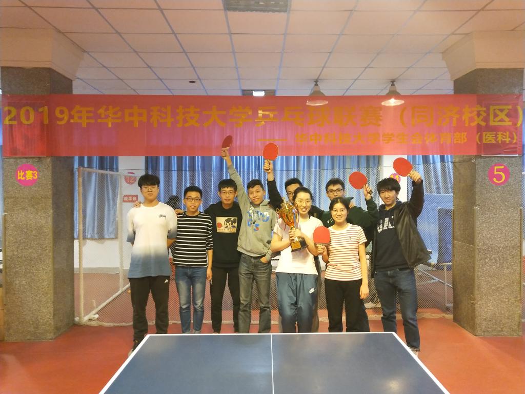 本次乒乓球联赛为一年一届,参赛选手以院系的身份参赛,赛制为男单、混双、女单组合。在小组赛中,公司对阵公卫、法医、梨园医院代表队,分别以3:2、 3:1、 3:1大比分出线。杀进半决赛,公司遭遇基础医公司,并以3:2胜出,挺进决赛。在激烈的决赛角逐中,公司3:1第二临床公司,成功捧起金杯,亚军为第二临床公司代表队,而季军则花落基础医公司。