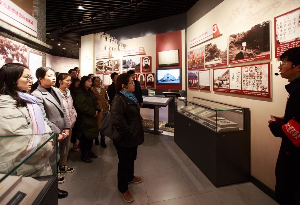 在讲解员的带领下,师生们参观了中国共产党纪律建设历史陈列馆、中共五大会址。在纪律建设历史陈列馆,“创立与探索”“推进与曲折”“恢复与发展”“新时代新征程”四个主题板块展示了不同历史时期中国共产党的纪律建设、党风廉政建设和监督执纪的历程。大家感受到纪律建设永远在路上,初心使命永远不能忘记,党性原则和纪律规矩意识永远要牢记。在五大会址,“高潮与危机”“奉献与局限”“应变与转折”三大展区再现了1927年前后的历史情景。透过丰富的文物与文字图片,大家深深感受到早年中国共产党探索中国革命道路的艰难历程,感受到当年紧张复杂的氛围。历史与此刻在这里交汇。缅怀峥嵘岁月,师生们对革命先辈为中国民主革命所展现的不畏牺牲与崇高的品格肃然起敬,感恩革命先辈呕心沥血的奉献与视死如归的牺牲,铸就了我们今天富强民主的社会主义新中国。
