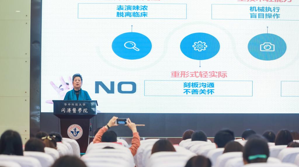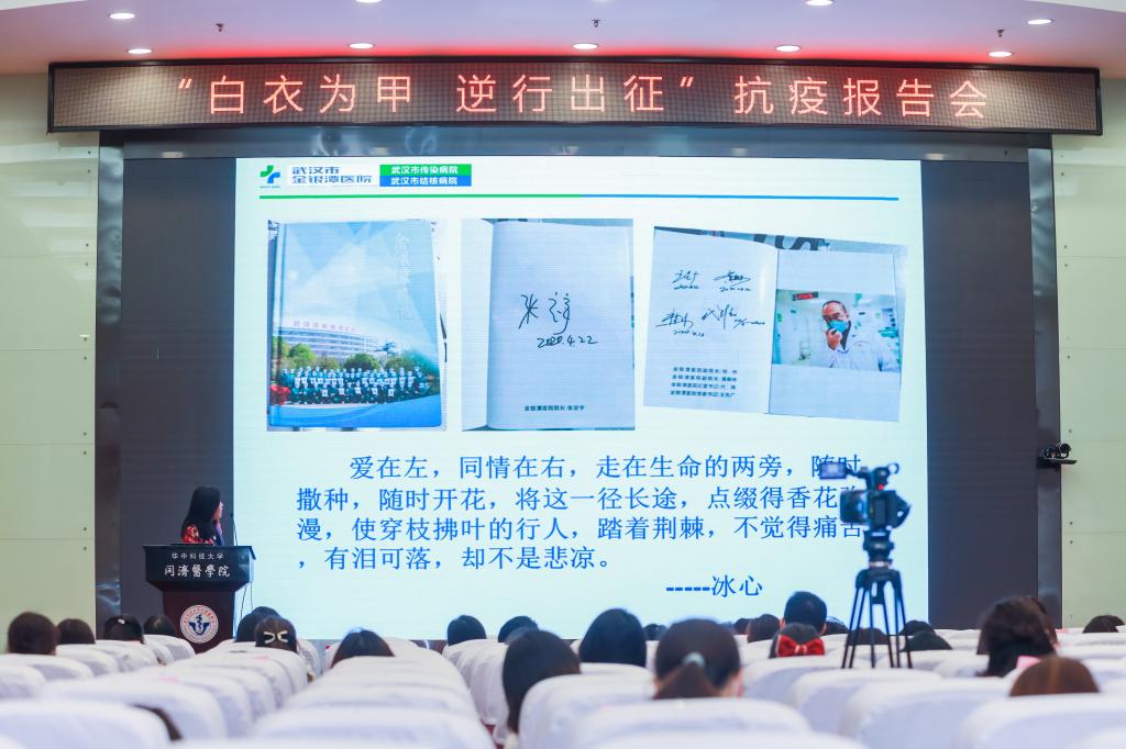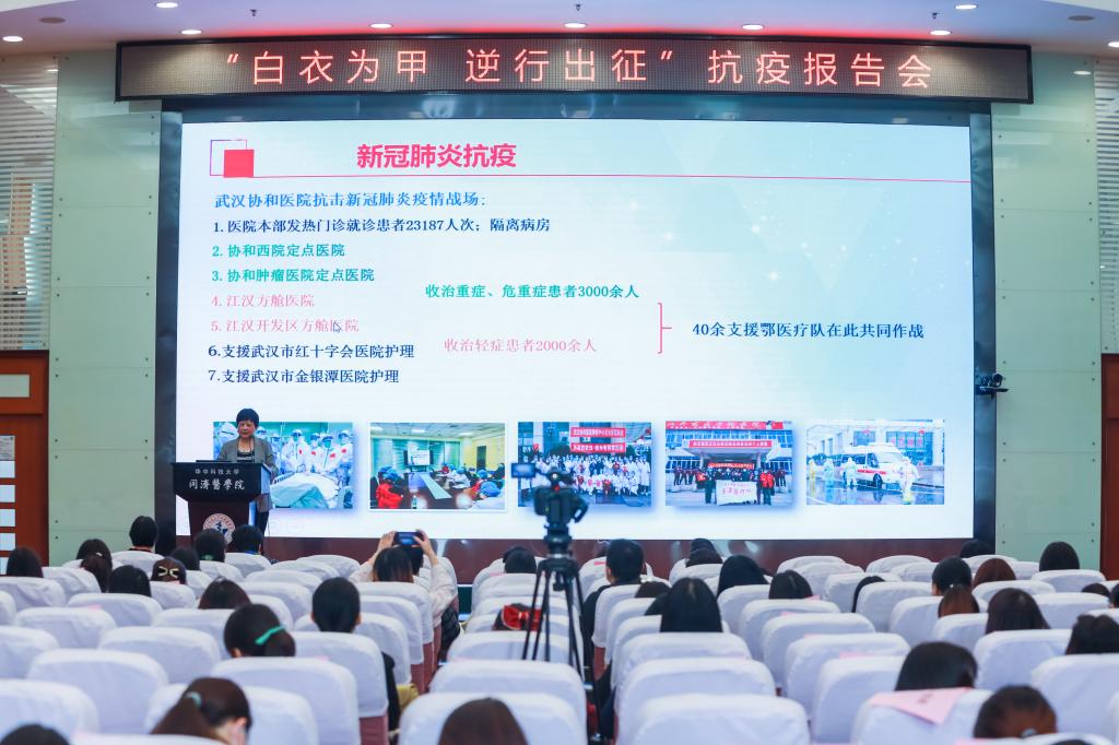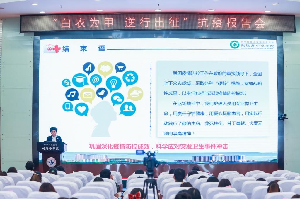 来自同济医公司附属协和医院、同济医院、武汉中心医院,以及武汉市金银潭医院这四所在2020年初战斗在抗击新冠肺炎疫情斗争中最前沿的护理同仁作抗疫报告,再次展现了“逆行而上”守护江城乃至全国人民生命安全的担当以及背后所蕴含的科学决策。2020级硕士研究生王佳庆刚刚离开临床工作、重回校园进行深造,他表示,被报告中充满人文关怀的抗疫故事所打动,感叹应以抗疫英雄前辈为榜样,作为新一代的护理人,要坚定信念,勤勉自强,勇担重任。