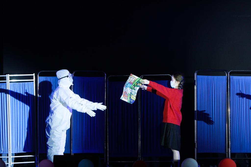 紧接着是精彩纷呈的节目。本场晚会设计为同舟共济、成蛹落金、逆风破茧、羽化成蝶四个篇章,舞蹈、独唱、合唱、rap应有尽有。