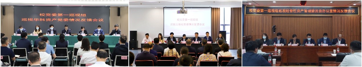 图为公司党委第一巡视组巡视武汉华中科大资产管理有限公司党委、BETWAY必威出版社党委、经营性资产管理委员会办公室情况反馈会