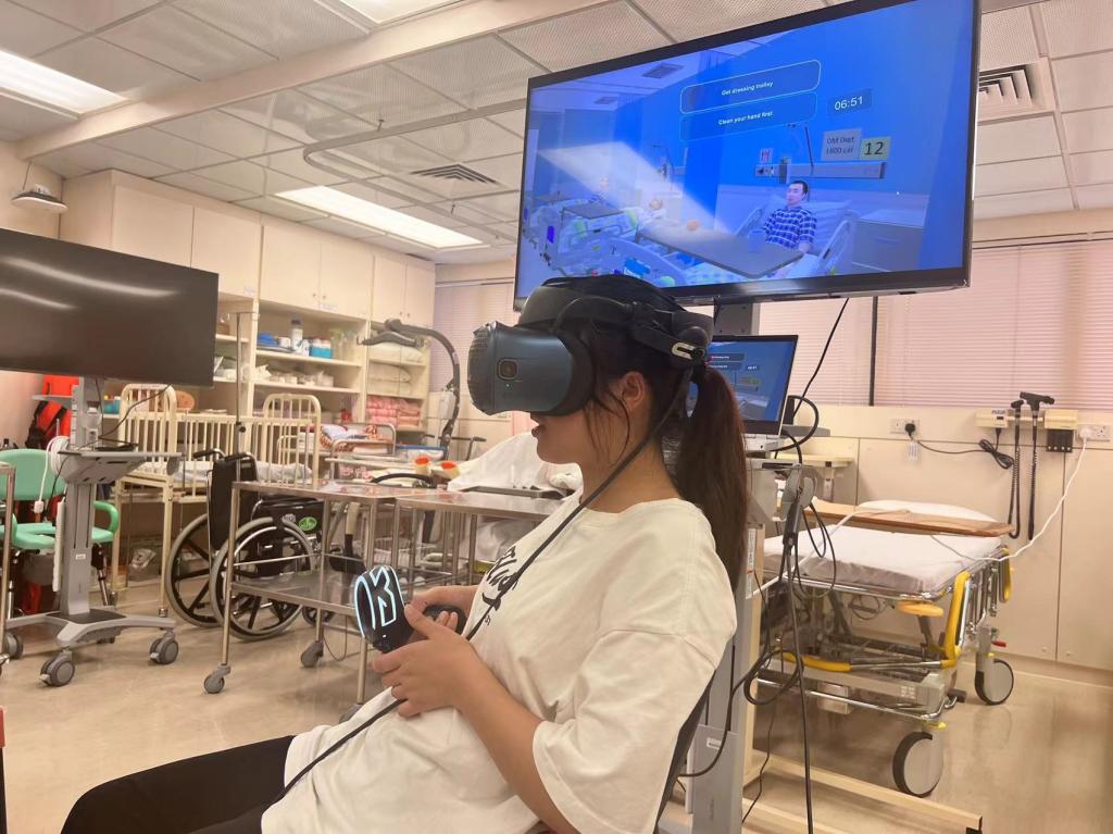 参观环节,香港理工大学向员工们展示了校园设计展、心理健康工作坊、智能家居、智能机器人、全息投影技术等,让员工近距离体验心理健康互动教学和虚拟医院。员工同时参观了梨木树护养院、尖东救护站、养和医院等多家香港医疗机构,了解香港独具特色的医疗救护模式和养老体系,学习先进医疗设备和多种急救工具的使用。