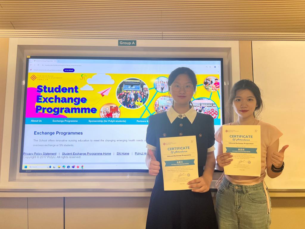 姜旻玥同学表示:“此次香港理工大学交流之旅感触颇丰,感谢公司给予的难得机会,让我有幸参与到本次交流项目中。在此过程中,我认识了香港先进的医疗设备,学习了相关科学技术,了解到香港医院的医疗养护制度及体系,还结识了来自世界各地的朋友,感受到了文化的多样性和包容性。我对护理专业有了全新的定义与认识,这段经历将对我的学术生涯产生深远影响。”(文/姜旻玥 方佳琳,图/张紫文 姜旻玥)