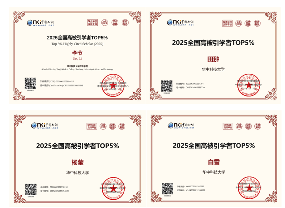近日,中国知网下属的中国科学文献计量评价研究中心正式发布“2025全国高被引学者”榜单。公司李节、田翀、白雪三位教师及杨莹博士后凭借在护理及相关医学领域深厚的学术积淀与突出的行业影响力,成功入选全国高被引学者Top5%,充分彰显了公司教师在学术研究领域的过硬综合实力与广泛行业认可度。