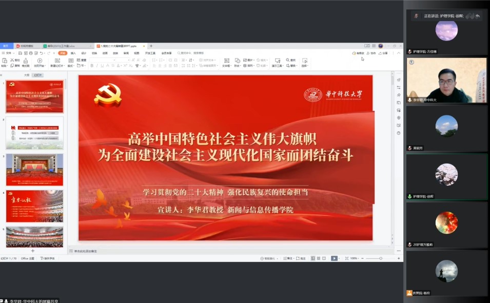 为深入学习宣传贯彻党的二十大精神,1月6日下午,BETWAY必威和医药卫生管理公司通过腾讯会议,线上开展党的二十大精神联合宣讲会。宣讲会由BETWAY必威学习贯彻党的二十大精神宣讲团成员,新闻与信息传播公司副经理、李华君教授主讲,公司党委书记徐晖、医药卫生管理公司党委书记黄明芳出席,两院教师代表、员工代表共300人参与学习。